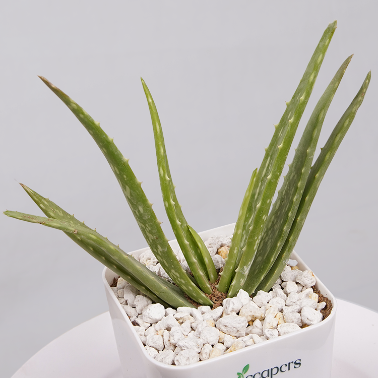 Aloe Vera brings health and beauty together. Its leaves can be used for soothing burns and skin care, while its presence adds greenery to your interiors.