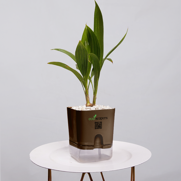 Provide bright sunlight, water weekly, and use sandy, well-draining soil. Maintain warmth and humidity. Fertilize monthly with palm feed.