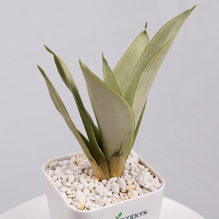 Its silvery foliage sets it apart from traditional Snake Plants. It’s drought tolerant, long-living, and effective at filtering indoor toxins.